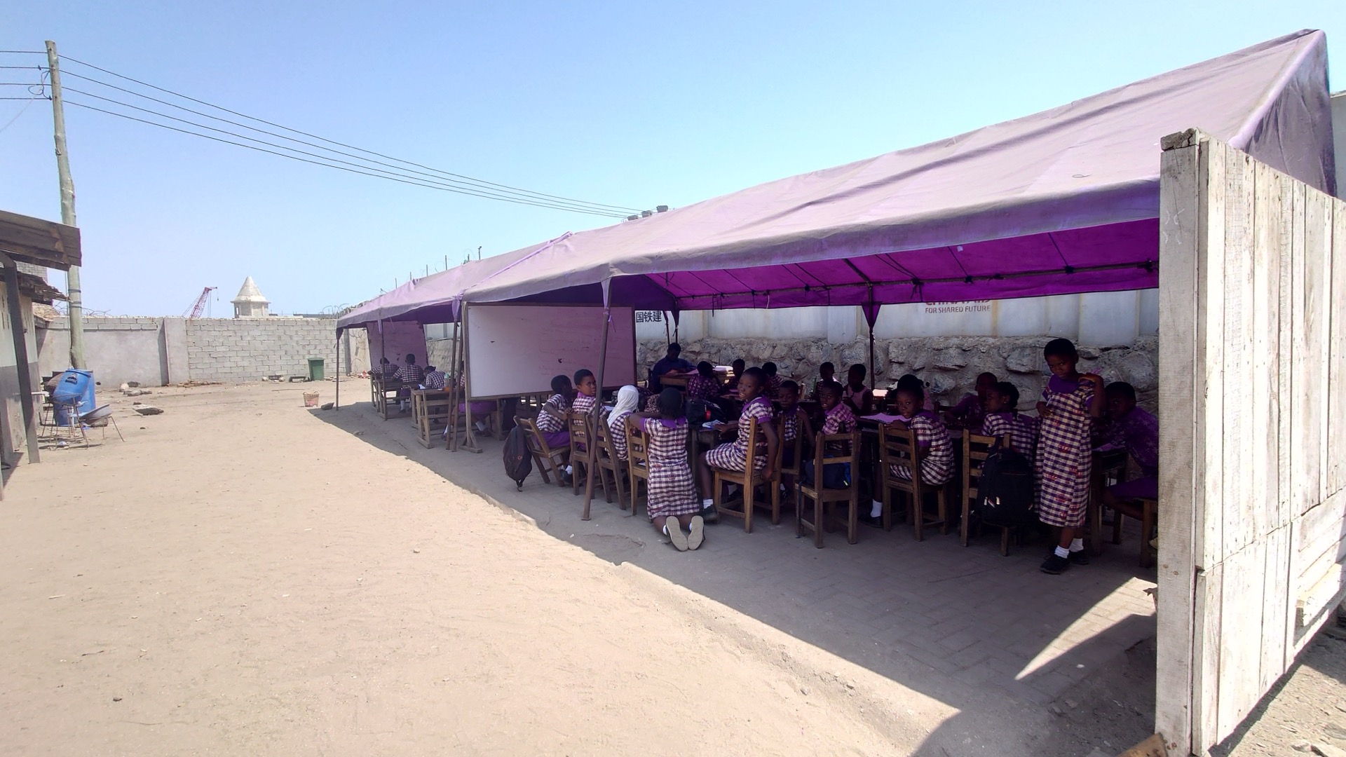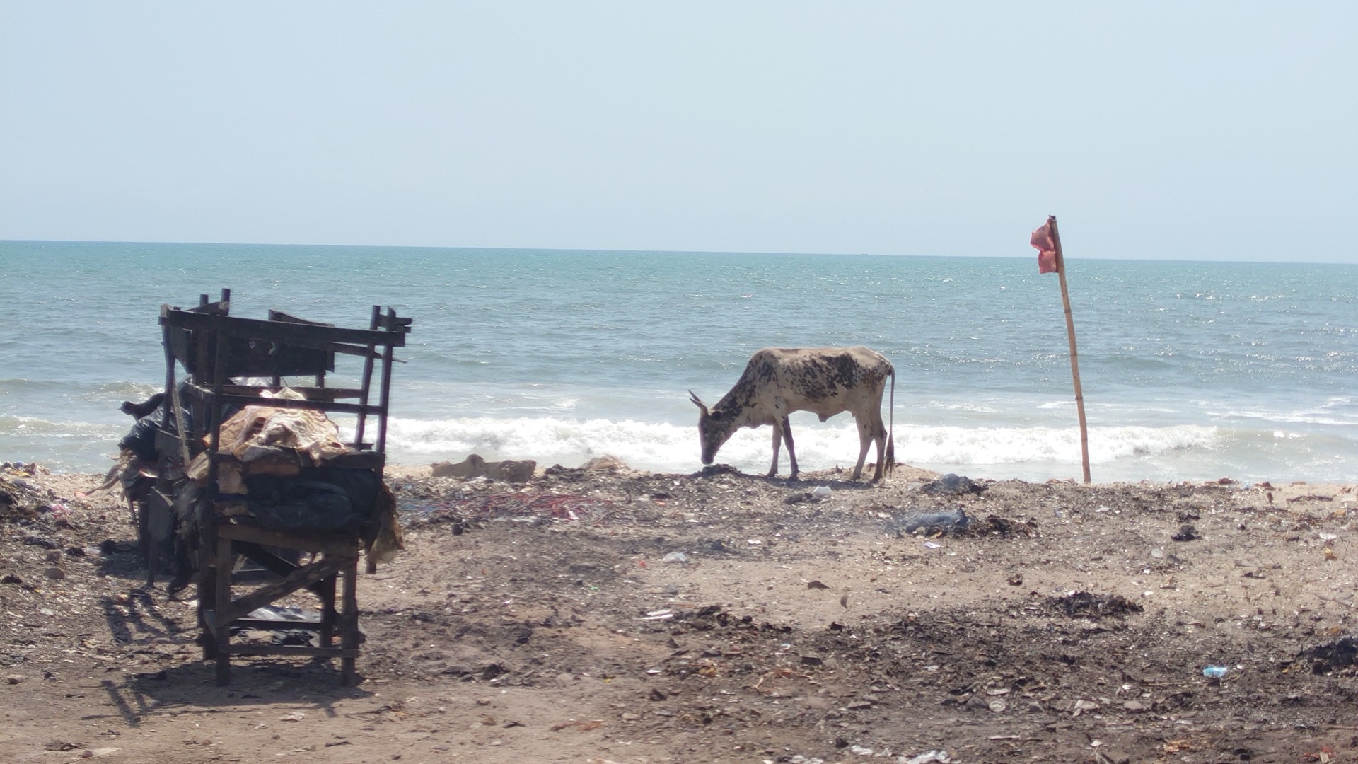 Na poslední část prohlídky nás bere do své školy, kterou pomáhá udržovat v chodu. Cesta vede přes pláž. Na pláži se pasou pohublé krávy, suší a udí ryby a celou atmosféru místa dokresluje čínská fabrika obehnaná ostnatým drátem s hrdým nápisem “Aid for Africa”.