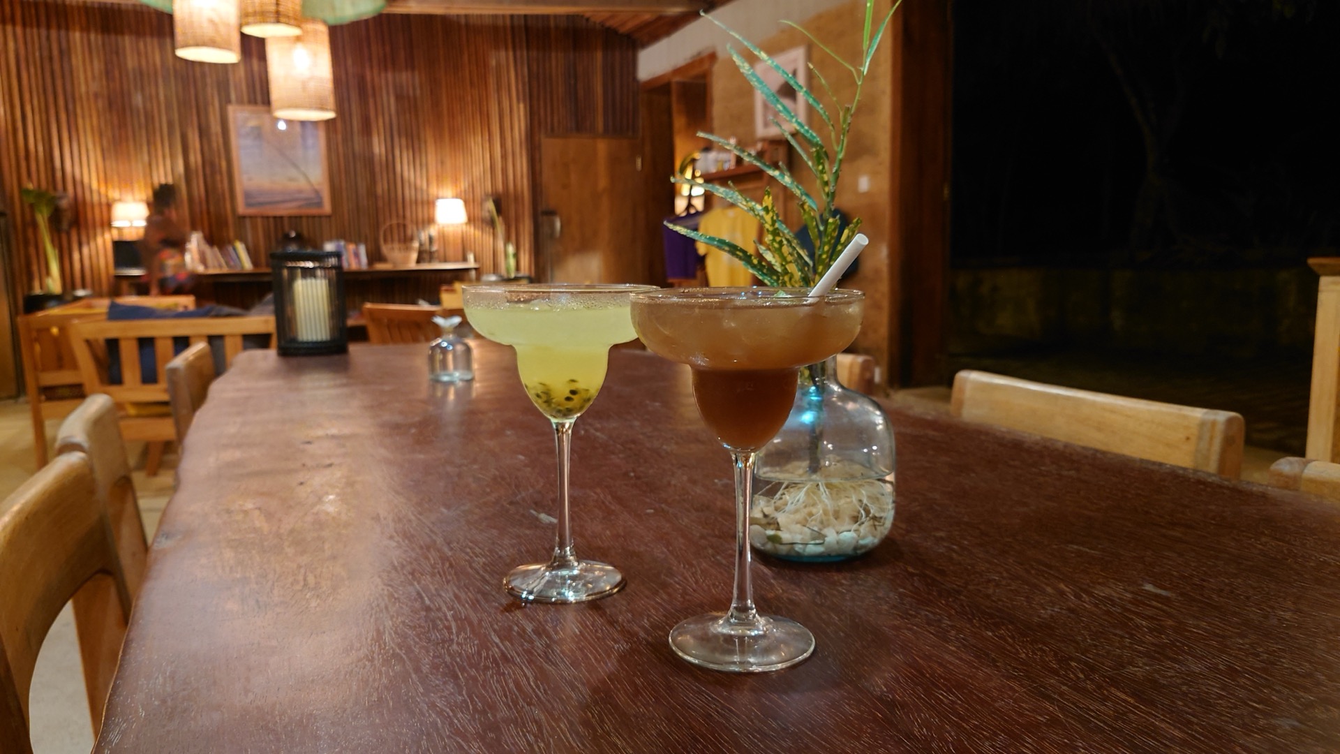 Plážový domeček je krásný, útulný a hned vedle surfařské školy a plážového baru. Bereme plavky a jdeme do moře. Večer trochu sprchne, tak si dáme pivo v baru, počkáme až přestane a vyrazíme na večeři zpátky přes říčku.