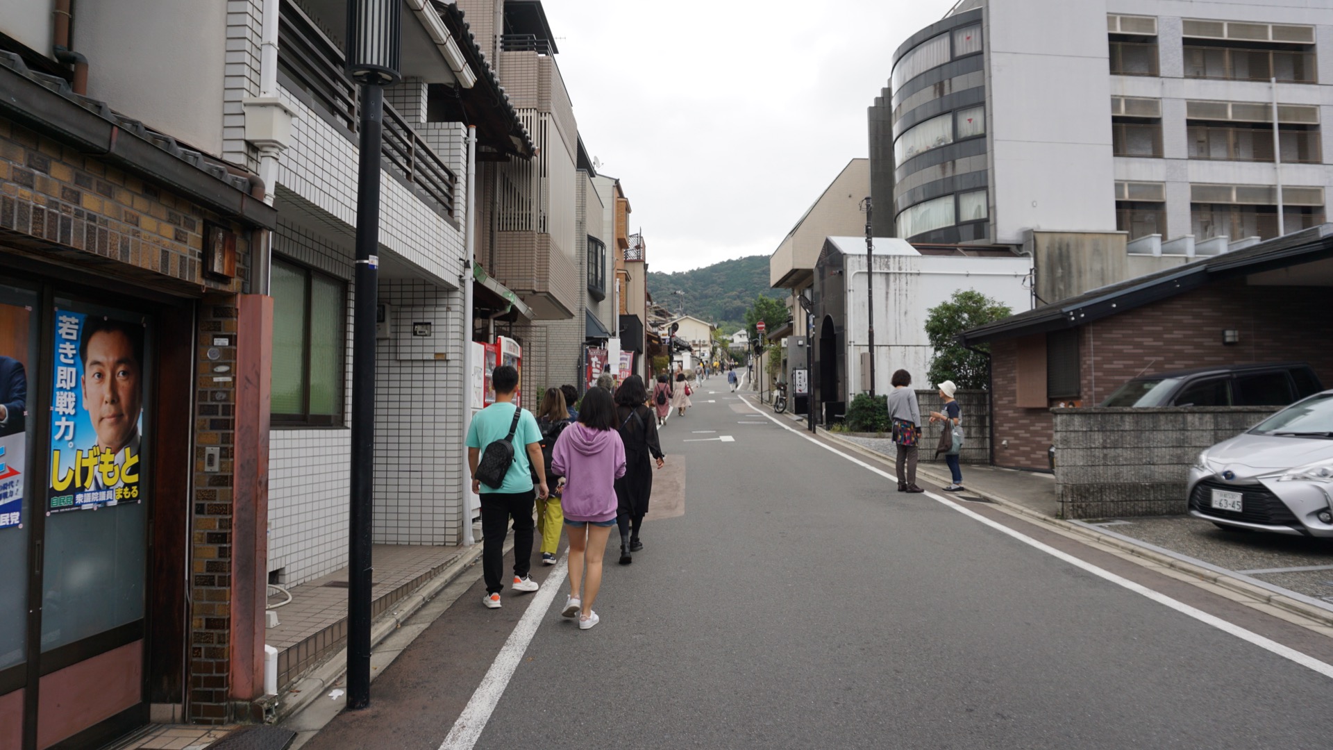 Zajímavá je kompozice krámků, kdy mezi obchůdky s čerstvými rybami míjím tu krámek s kabelkami, tam se suvenýry nebo sladkostmi. Na všech obchodech s jídlem je mimochodem upozornění, že na ulici za chůze se nejí. Nic, ani matcha zmrzlina. Pěkně všechno sníst přímo v krámku, nebo odnést domů.