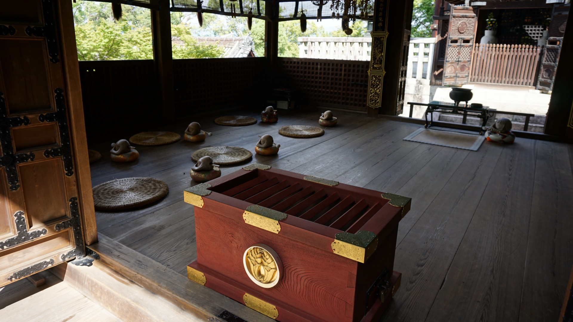 Chrám číslo čtyři v rychlém sledu. Volně procházím interiéry, ve kterých se zrovna chystá výstava váz, včetně poměrně moderních. Není tu moc lidí, utichl hluk města a procházet se bez bot po tatami je hodně příjemná změna.