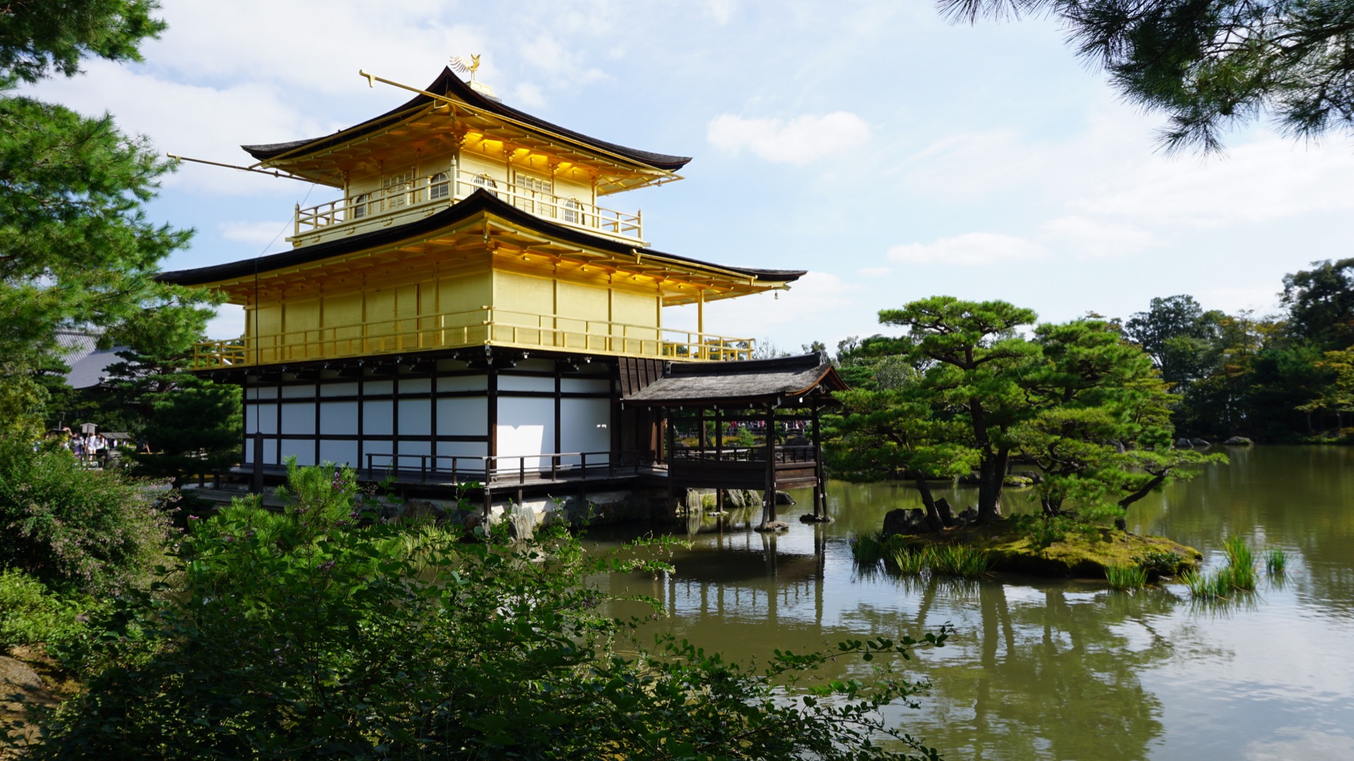 Chrám Kinkakudži je známý díky svému zlatému pavilonu. Ten je opravdu zlatý a vypadá parádně.