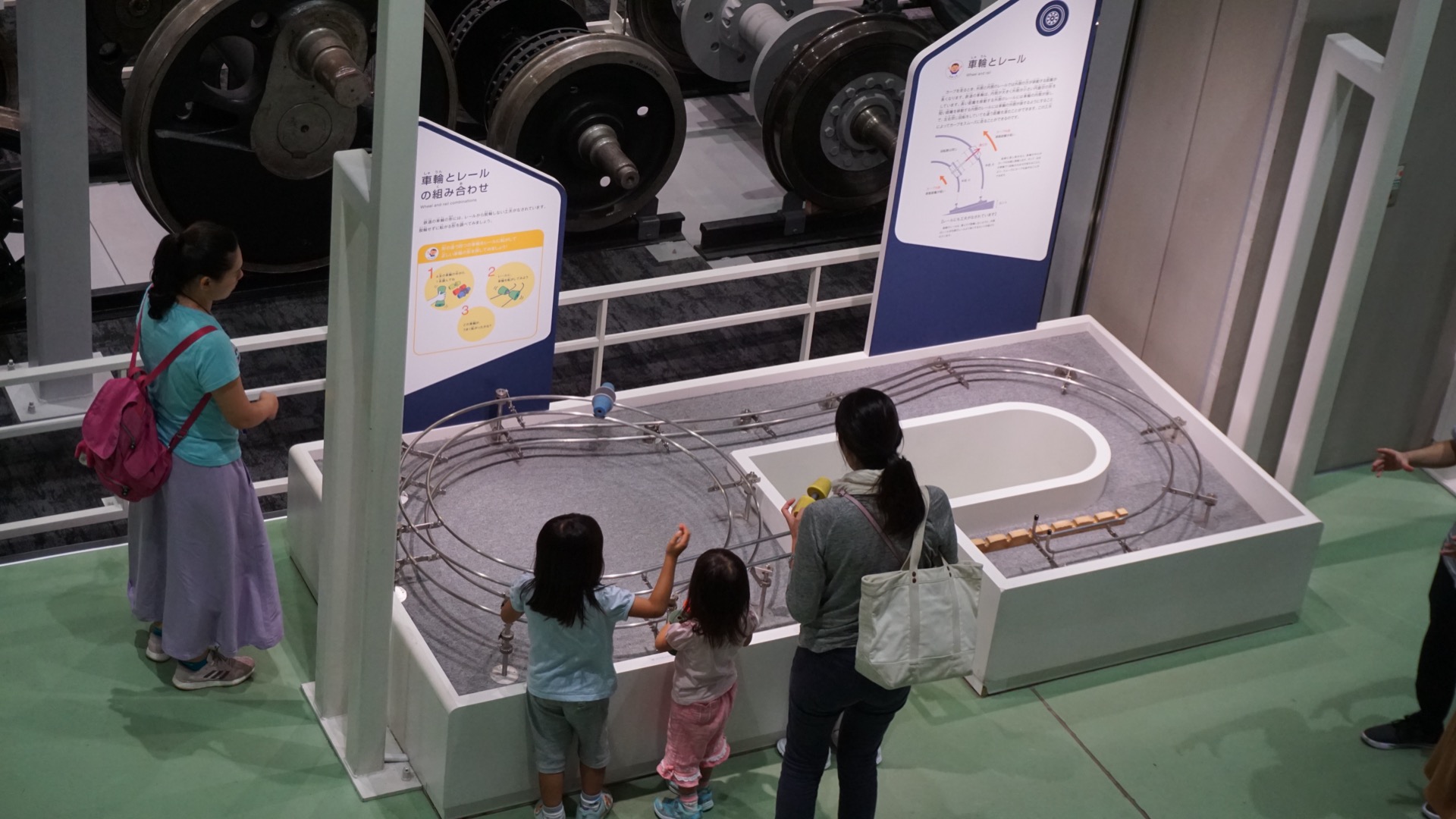 V sekci "jak se staví vlak", mají výbornou praktickou ukázku, jak se vlak vlastně drží na kolejích. Děti (ehm, fakt jen děti?) si můžou dolů po kolejničkách pouštět soukolí různých tvarů, až ten správný nespadne a sjede to celé dolů. Přitom s minimálním kontaktem okolíku s kolejnicí, zatáčení řeší zkosení kola.