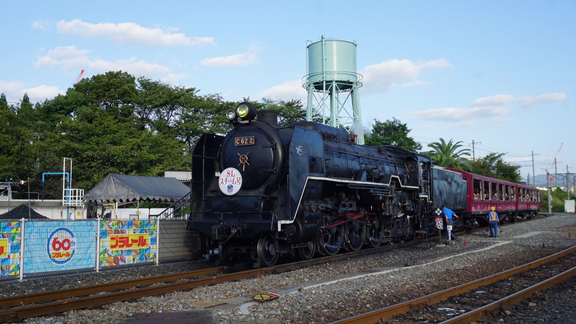 Venku ještě stihnu dojezd parní lokomotivy z víkendové jízdy, včetně demonstrace funkční točny.