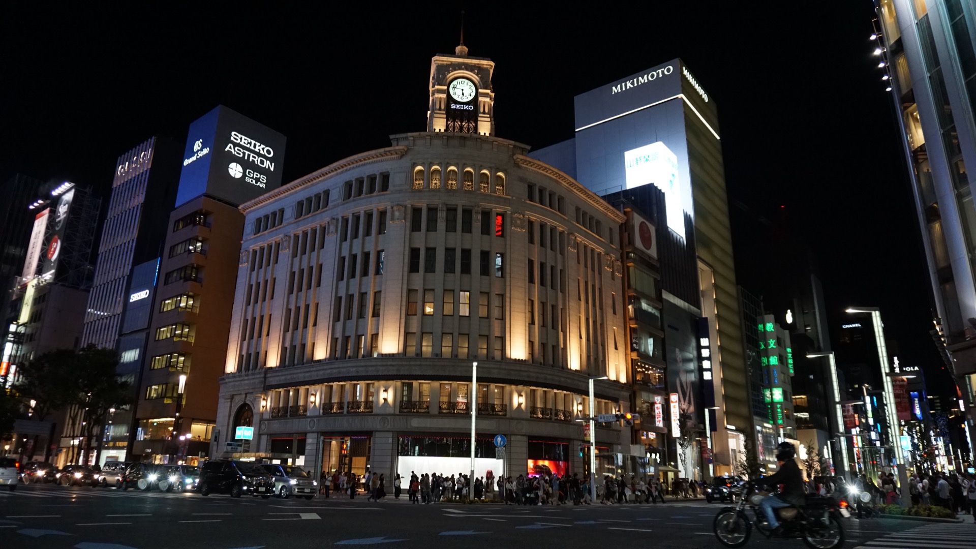Jsou tu soustředěné módní butiky všech značek, které se snaží tvářit, že něco znamenají. Kdo není tady, není. Mezi všemi těmi Gucci a Pradami je i showroom Nissanu. Bohužel kvůli tajfunu zavřený. Podotýkám, že jako jediný. Odnáším si z toho myšlenku, že Nissan vydrží míň, než Vuittonka.