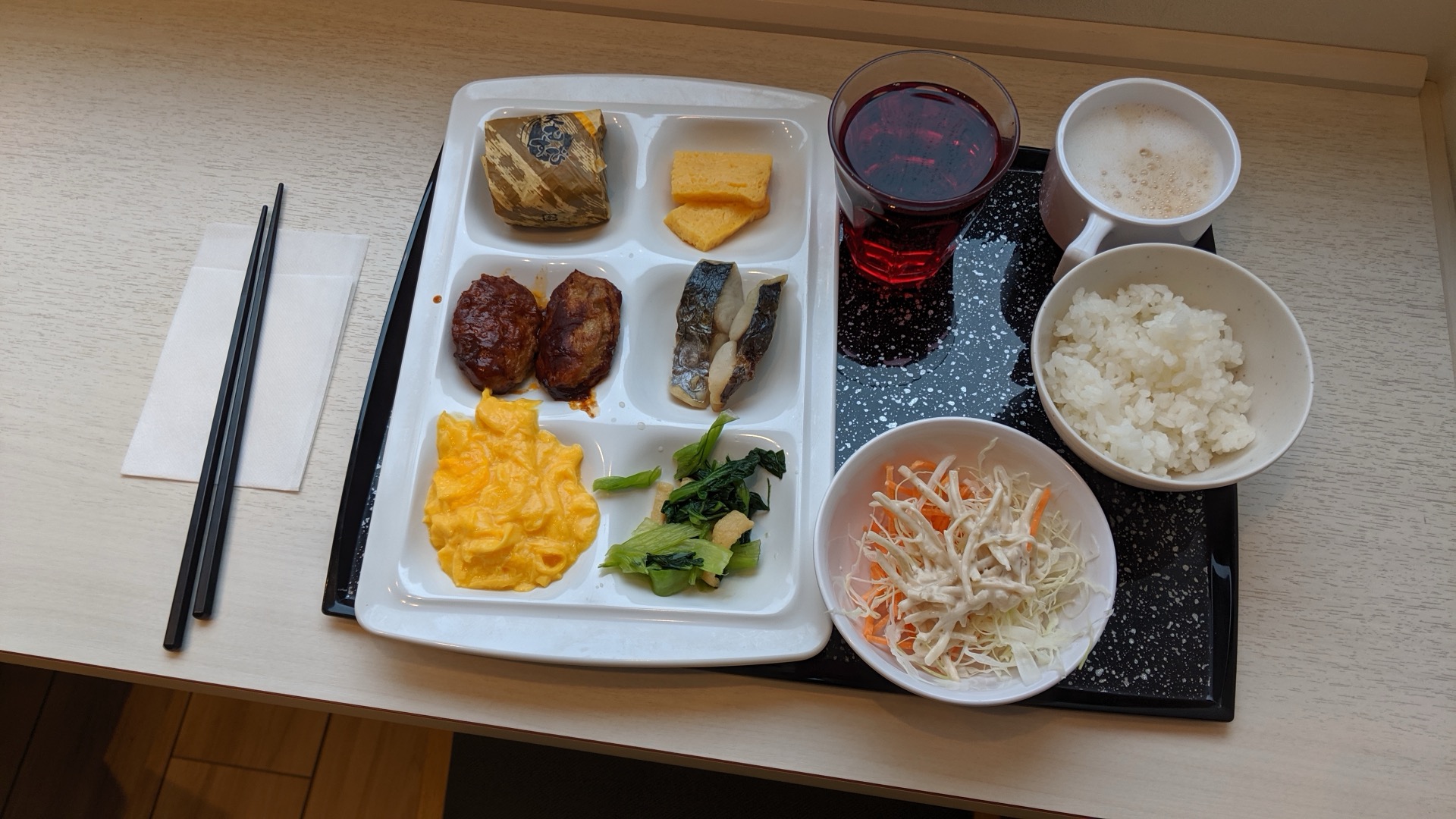 Dneska by měl přijít tajfun. Začínám den snídaní, tentokrát zase s fotkou, protože to stojí za to.