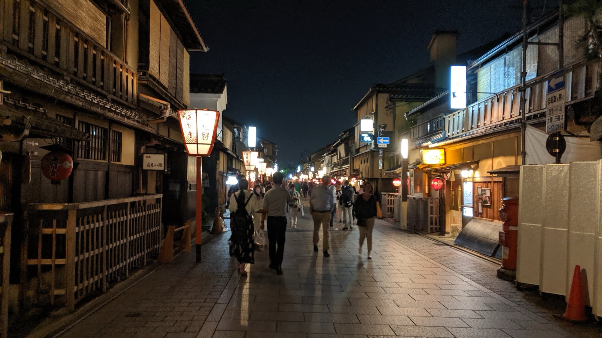 O to víc z toho potom vystupují jednak chrámy, ale pak také starší čtvrti, například Gion v Kjótu. Mezi staršími dřevěnými domy jsou lampy a lampiony, které vydávají hřejivější žluté osvětlení.