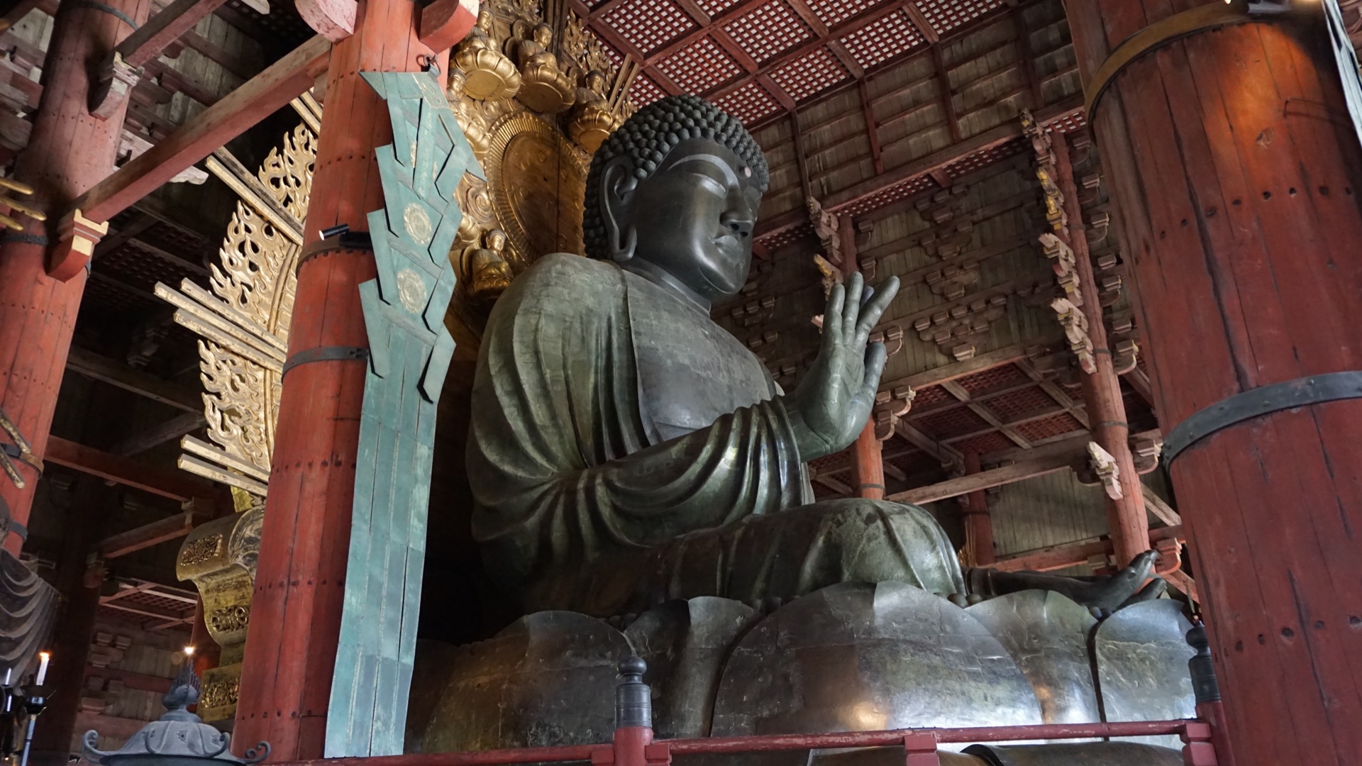 Chrám Todaidži je impozantní dřevěná konstrukce, jak zvenčí, tak zevnitř.