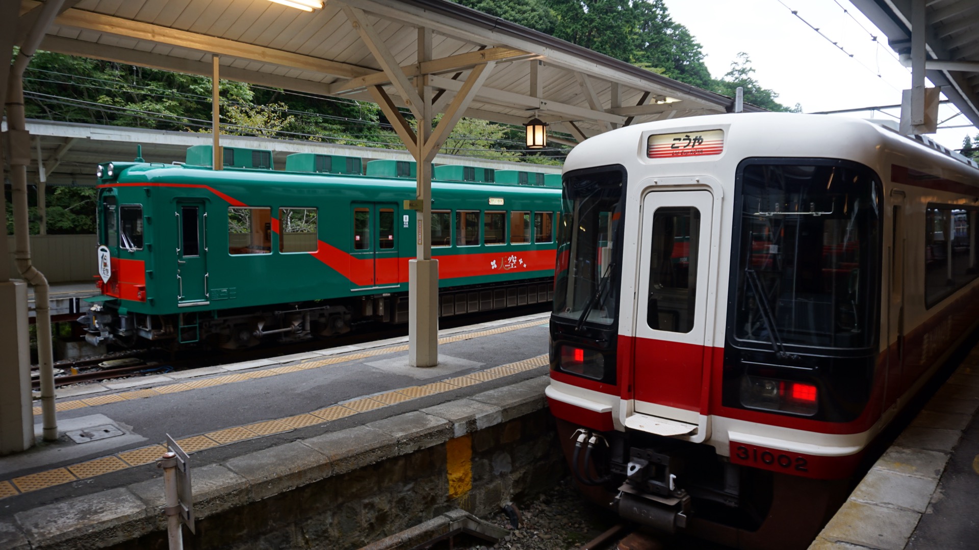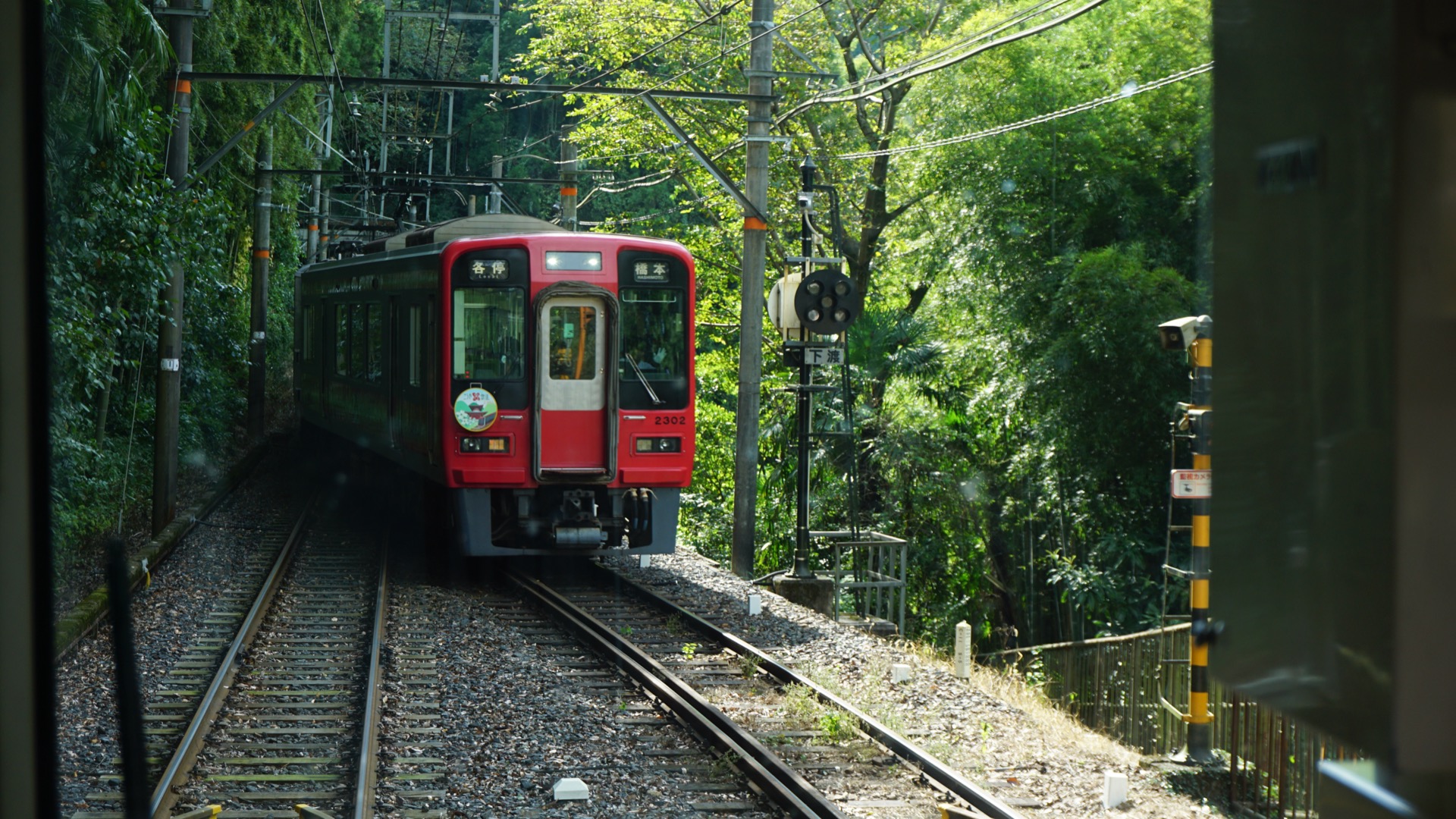 Po obědě si ještě v automatu omylem kupuju ohřáté studené kafe, poznámka do denníčku: Pozor na červená tlačítka v automatu, vypadne z nich horká plechovka. A pak už nasedám do osobáčku na poslední úsek Nankai line. Jak se ukáže, osobáček je úzkokolejka a mám ho skoro celý pro sebe.