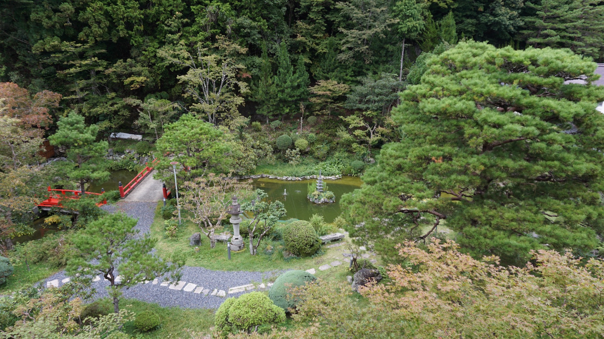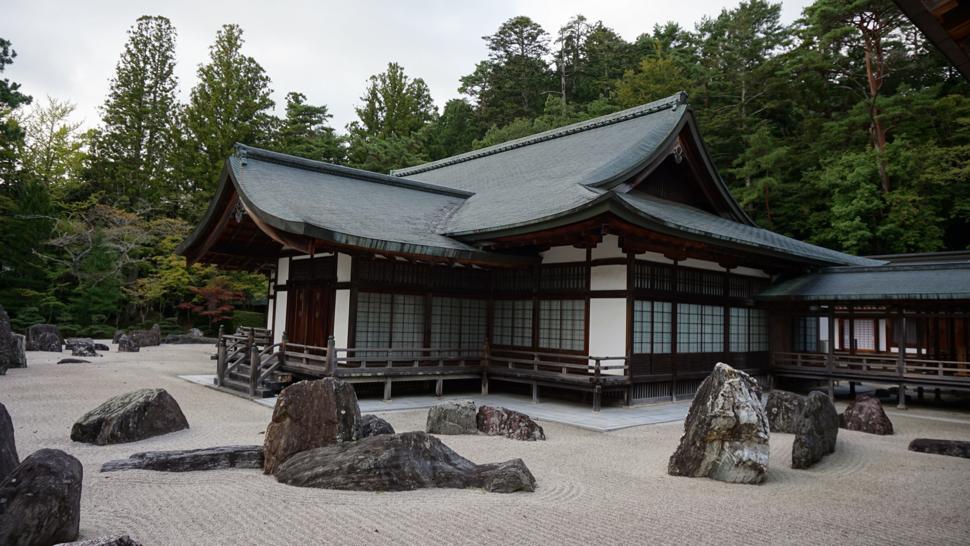 Budovy obklopuje kamenná zahrada, prý jedna z největších v Japonsku.