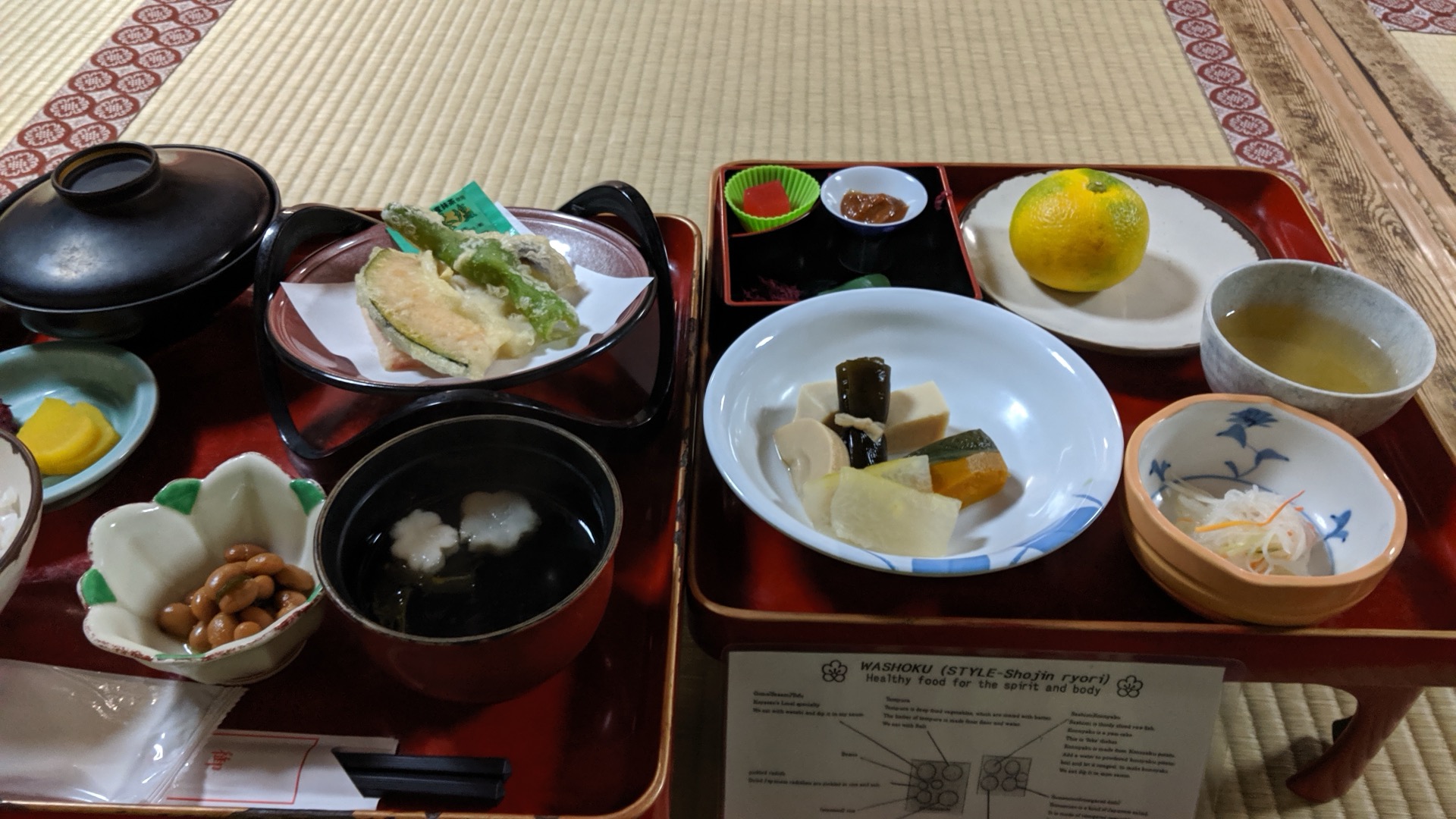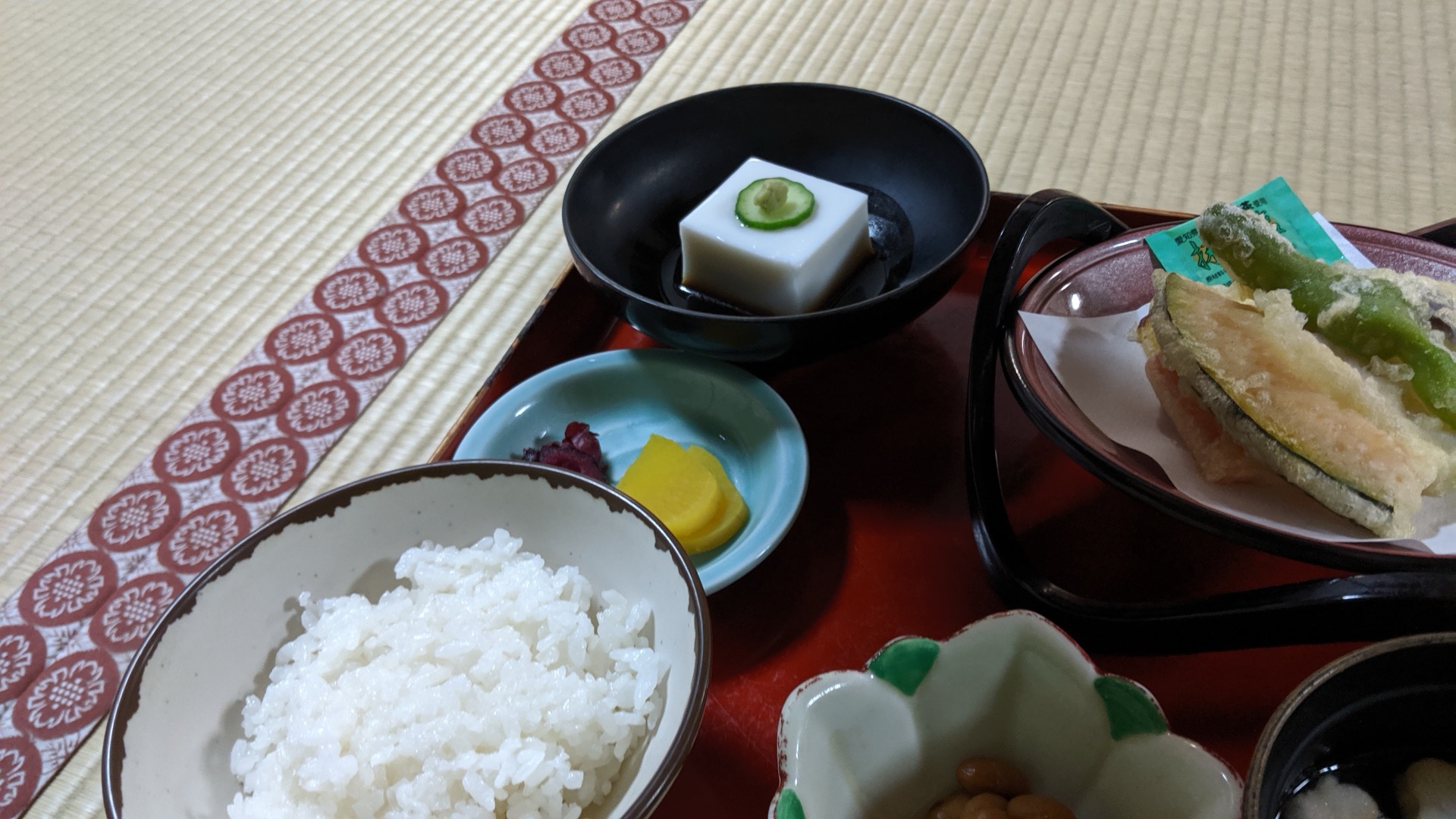 Tak to otáčím přes Buddhašpindl zpátky do chrám'b&b, abych stihnul společnou večeři. V půl šesté jsem uveden ke stolečku, kde je připravena večeře a návod k večeři.