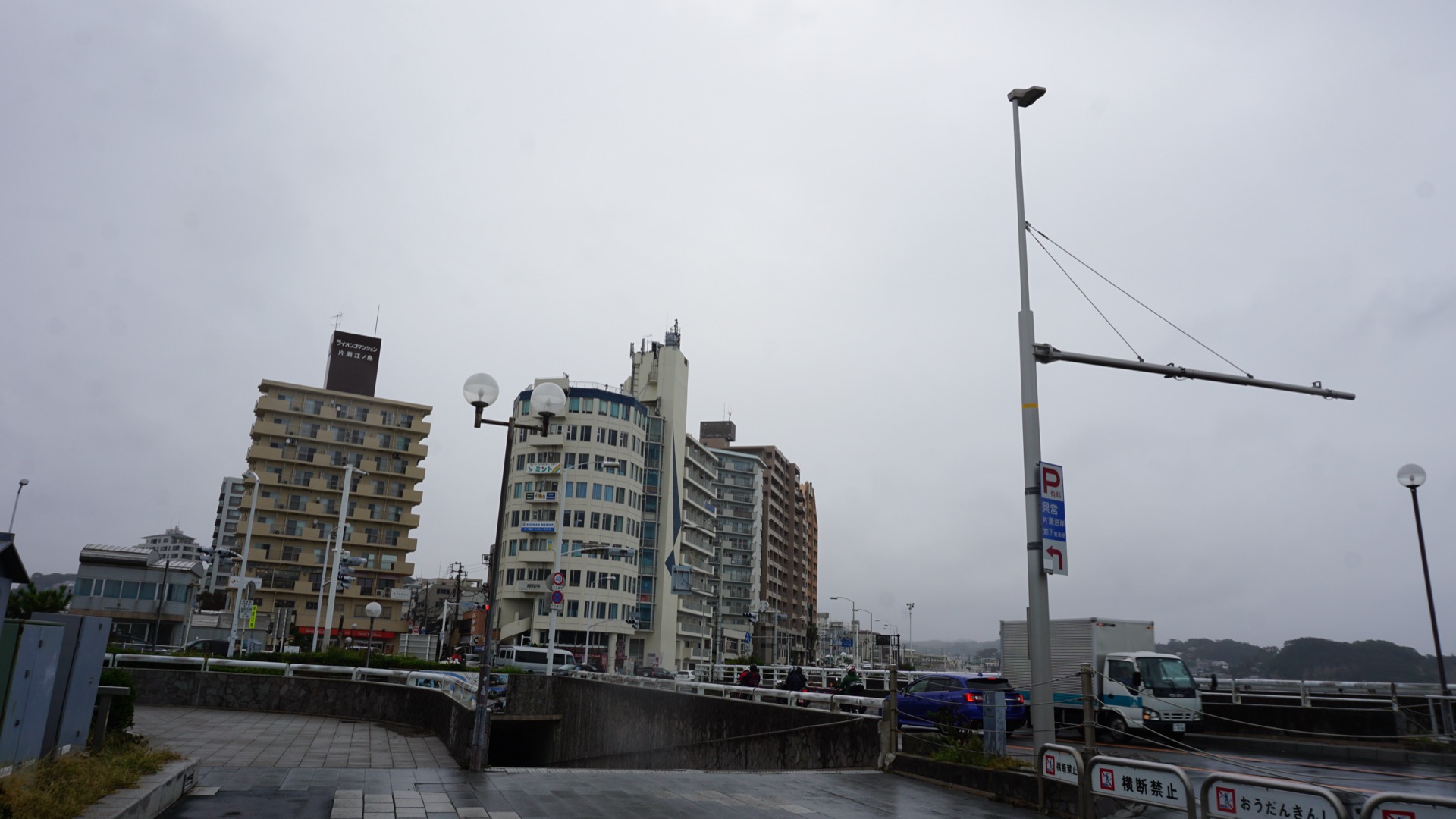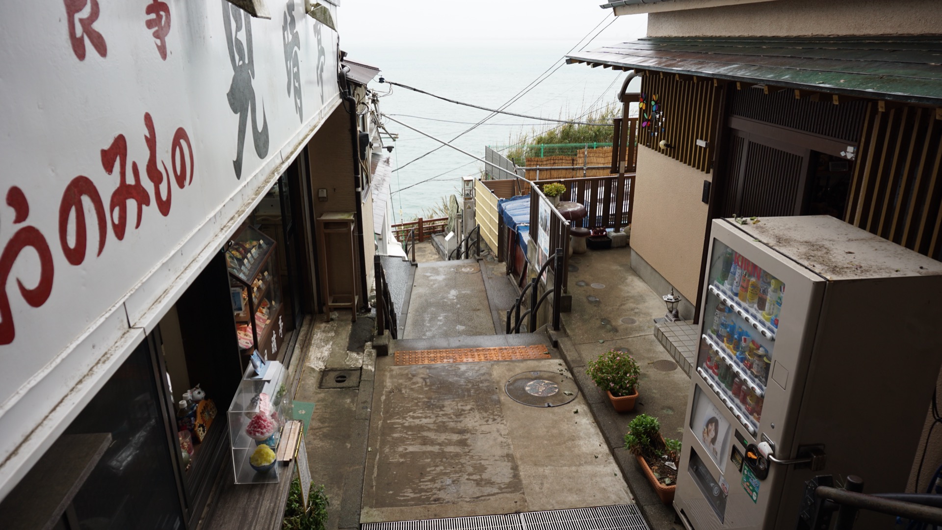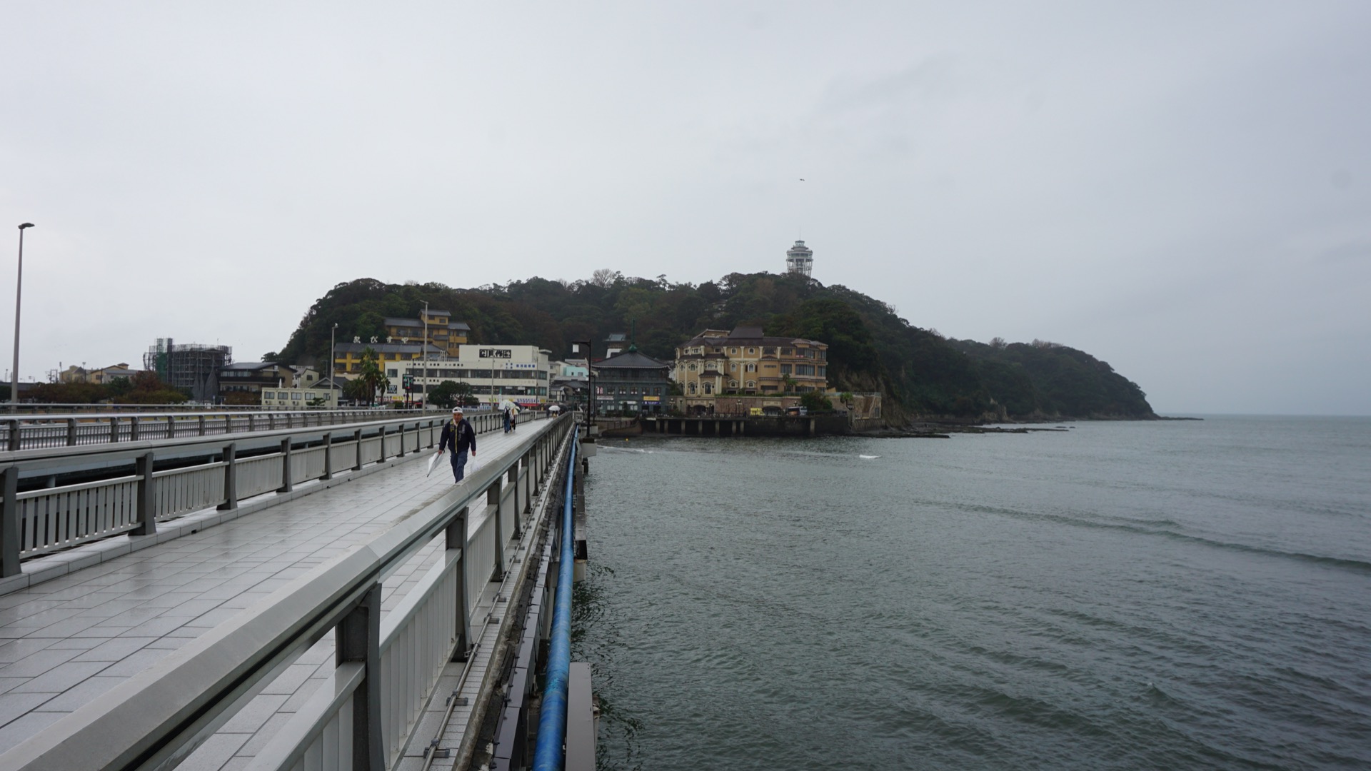 Enošima působí po ránu v tomhle počasí trochu depresivně.
