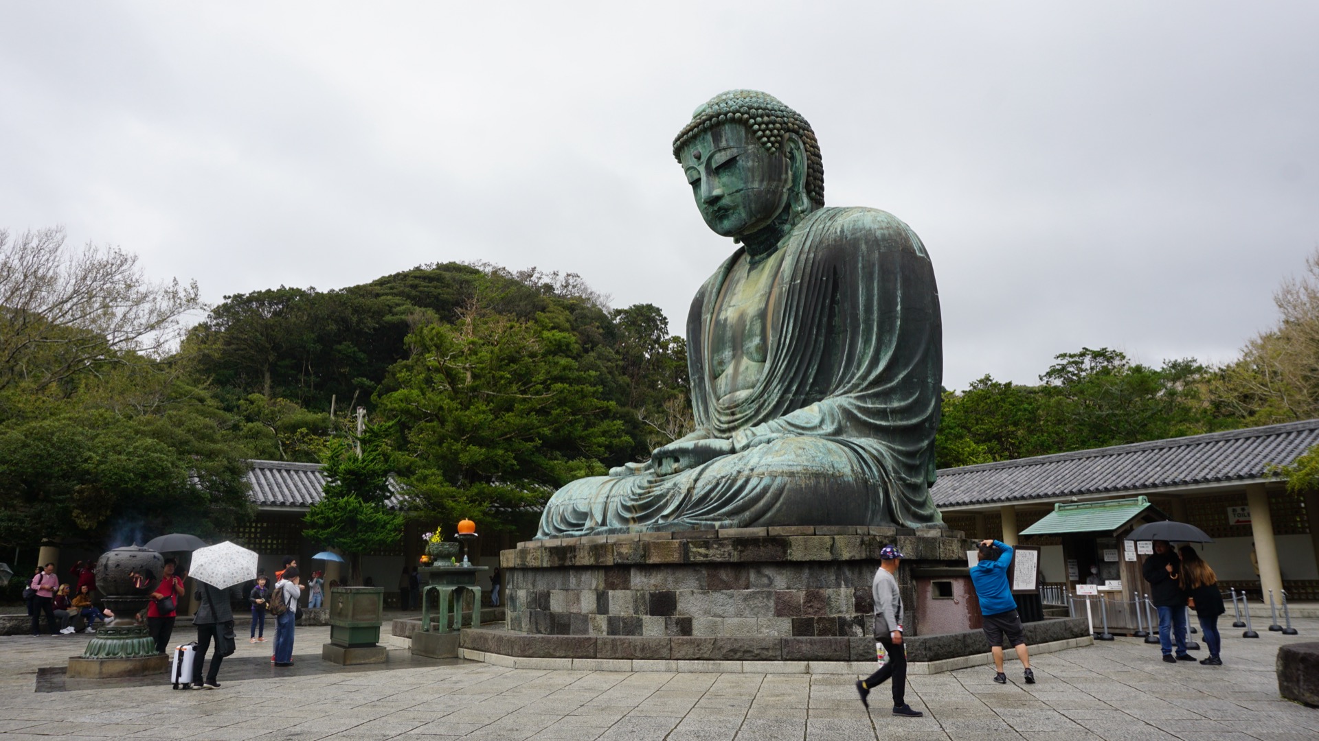 Zpátky na povrchu zemském a mířím k další zastávce, kterou je velká socha Buddhy v Kamakuře. Je opravdu velká.