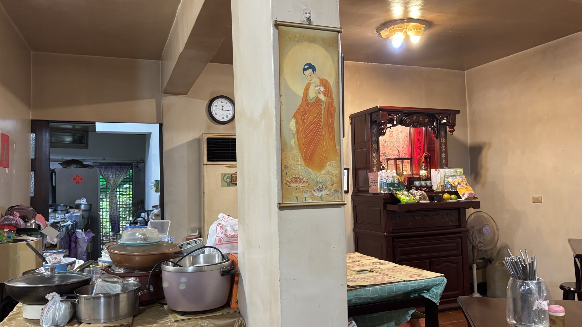 Déšť mě nakonec zastihne až těsně před koncem okruhu, ale schovám se do chrámu. Poté objevím malou vegetariánskou restauraci.
