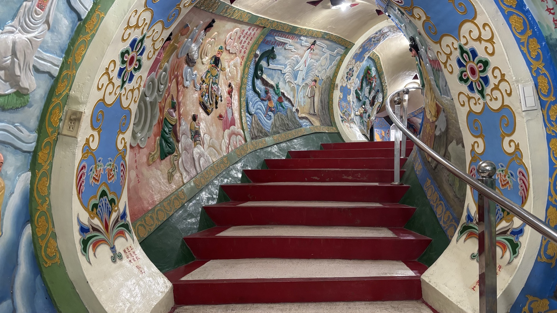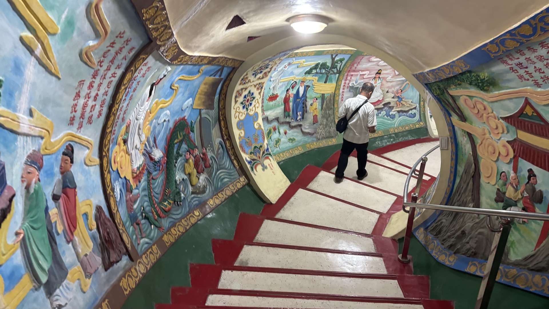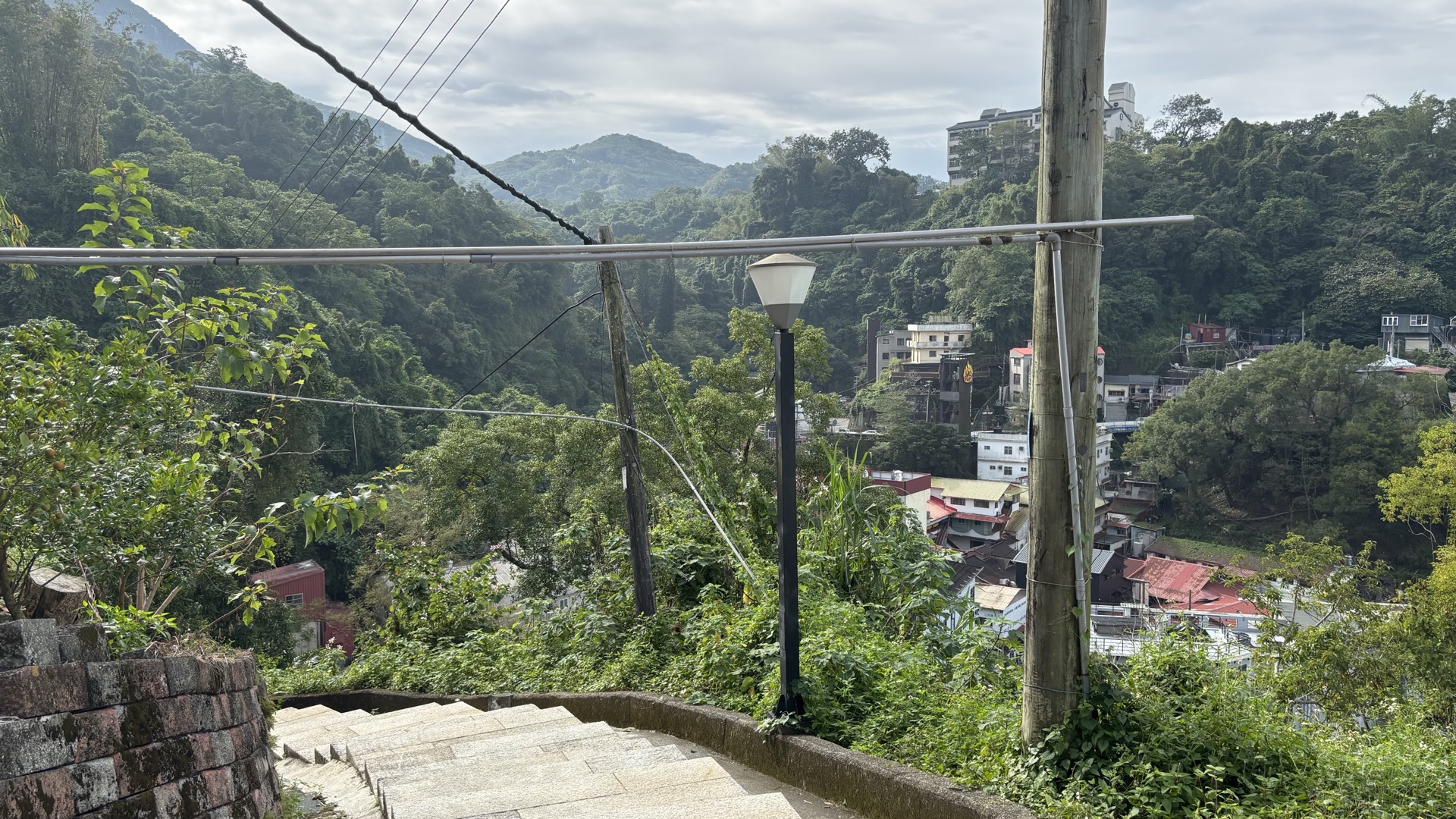 Dnešní snídaně v úplně prázdném hotelu vypadá tak, že mi pan správce odněkud, nejspíš z nějaké večerky, přinesl mléčný čaj a snídaňový burger s kuřecím, kari a vajíčkem. Sním to na recepci a protože mi do odjezdu autobusu do Ťia-i zbývá asi hodinka, jdu se projít na nedaleký kopec, mohl by tam být park a vyhlídka. Schody tentokrát nejsou v lese, ale zase je nepoměrně větší hic, teplota nějakých 27 stupňů už takhle po ránu a vlhkost asi 110 %. Úplně obvyklé počasí pro tuhle roční dobu to tu taky není.