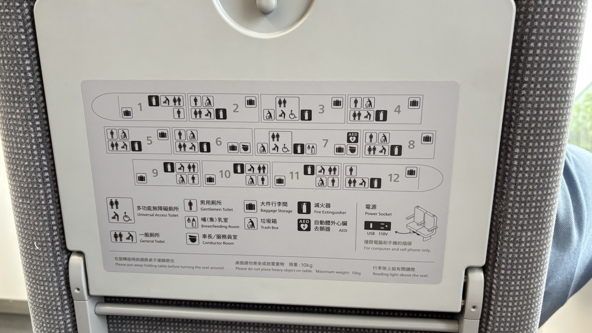 Sedadla jsou zase trochu užší na naše poměry. Sedí se už sice jen dva plus dva, ale rozchod je tu metrový, takže vlak je taky o pár desítek centimetrů užší. Zato je tu k němu k dispozici návod.