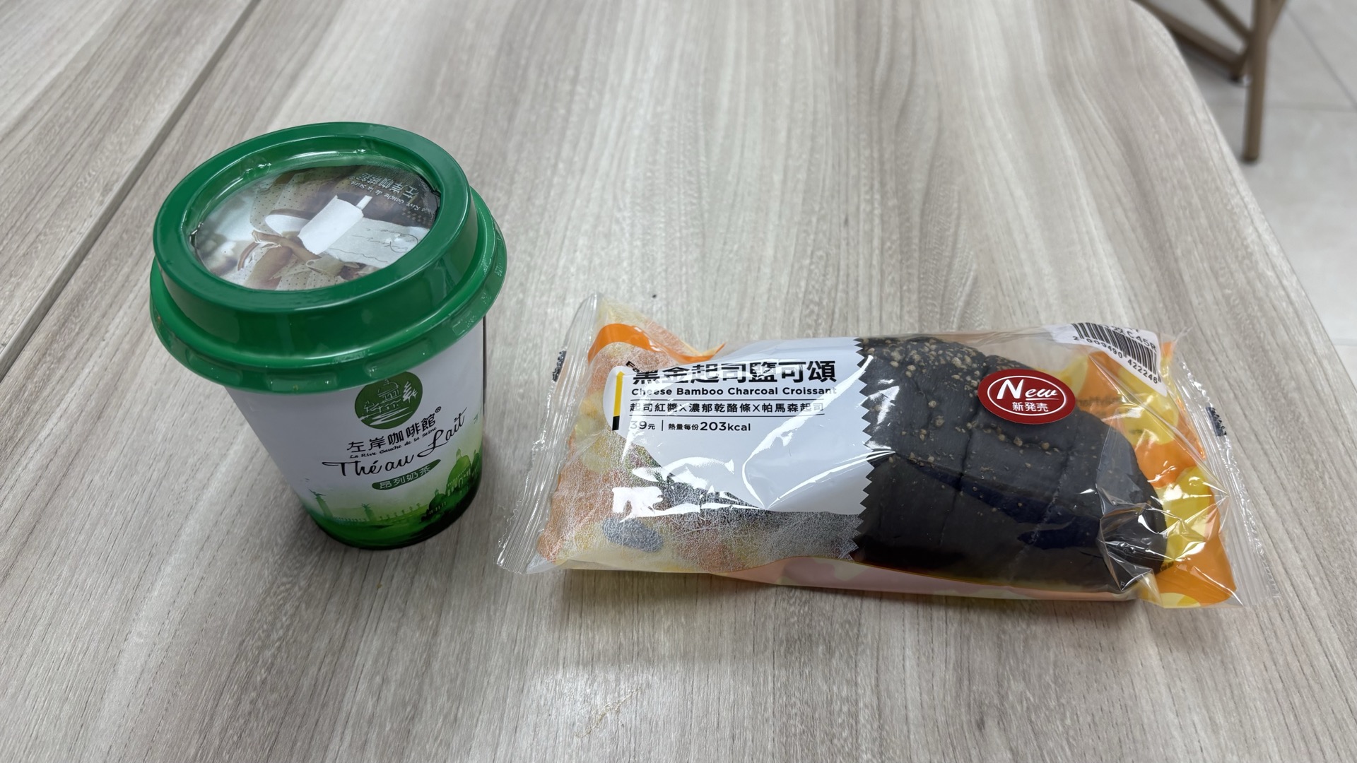 Dojdu na konec jezera a v místním 7-eleven ulovím svačinu. Zelený mléčný čaj a uhelný loupák se sýrem.