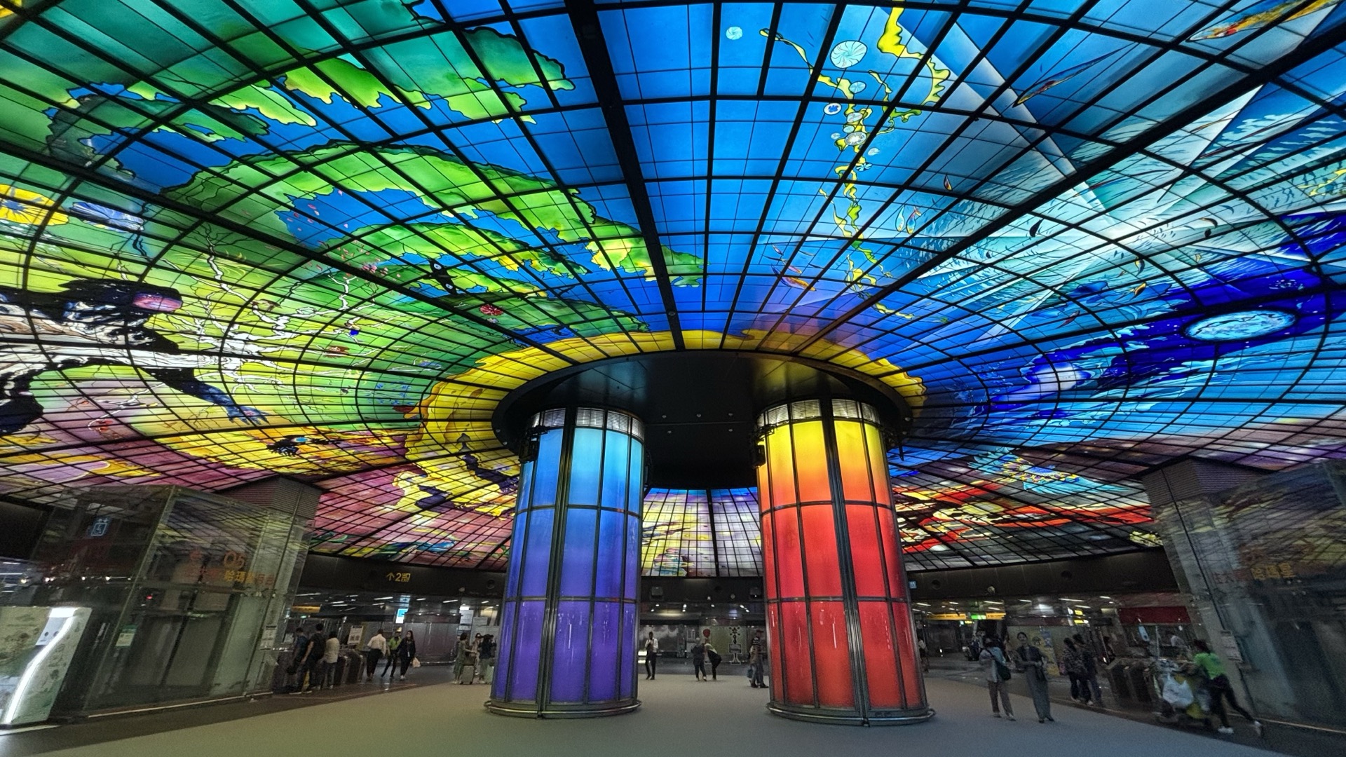 Zatím ale pořád neprší, tak vyrážím metrem zpátky do centra. Obdivuju výtvarně vyvedený vestibul stanice Mej-li tao-ťie jüan, kterém utady říkají světelný dóm.