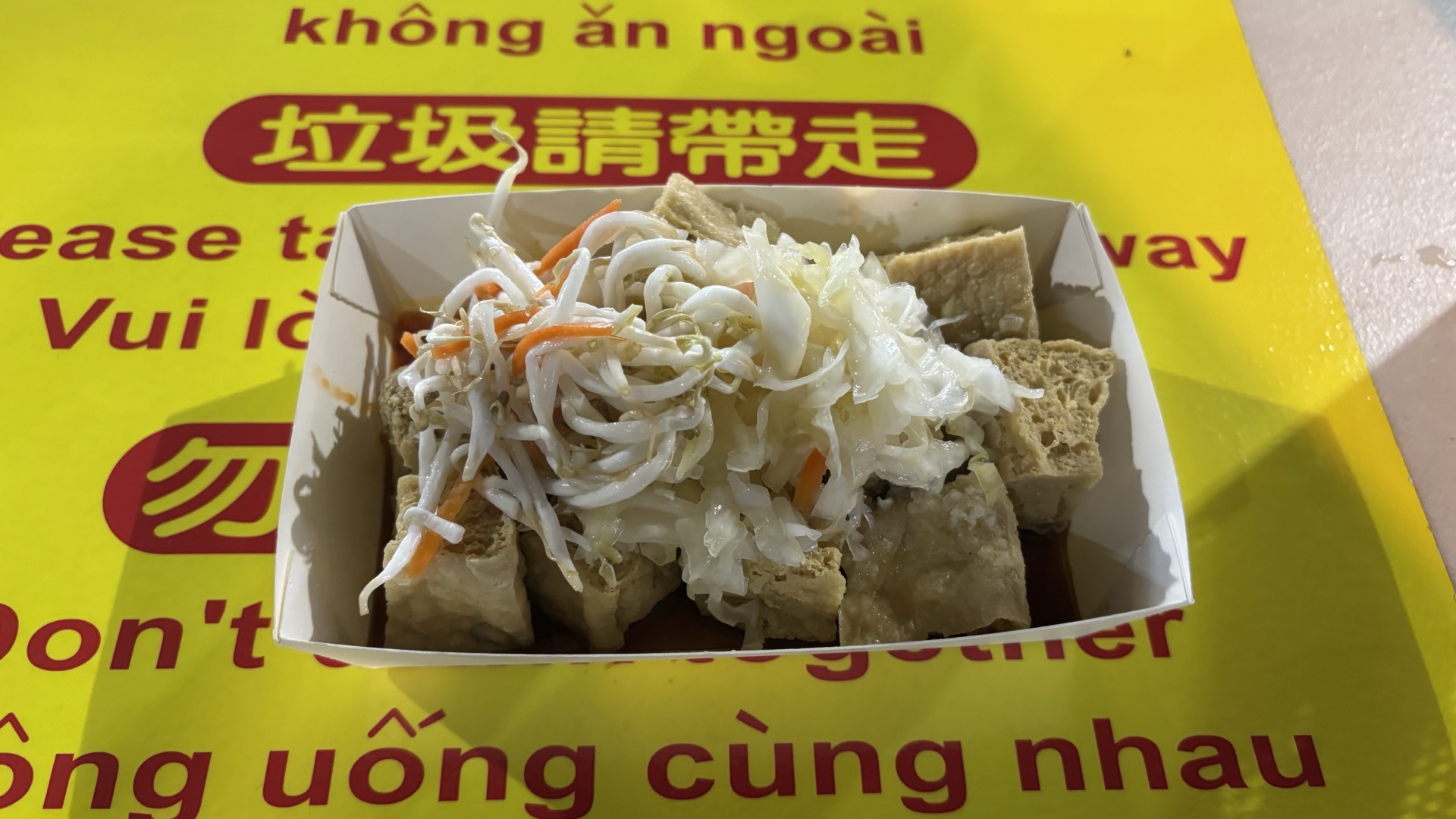 A pak vyrazím na noční trh, kde konečně ochutnám smradlavé tofu. Mělo by být fermentované a smažené do křupava. Je smažené do křupava, ale moc nesmrdí. Může to být i tou stále hustou mlhou s pekingsko-ostravským odérem.